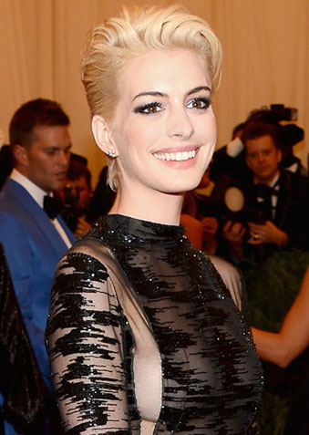 Anne Hathaway Debuts Spiky Blonde Haircut at the Met Gala