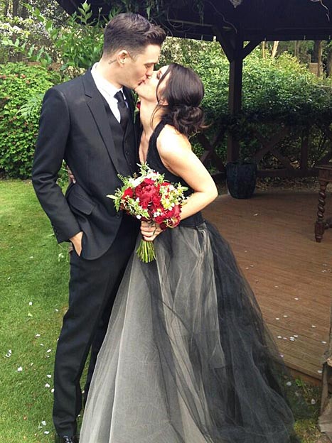 “I now pronounce us Mr. and Mrs. Beech! Ahhh! Xx,” she tweeted along with a photo of the dark dress, which appeared to feature a halter top and romantic A-line skirt with various shades of grey.