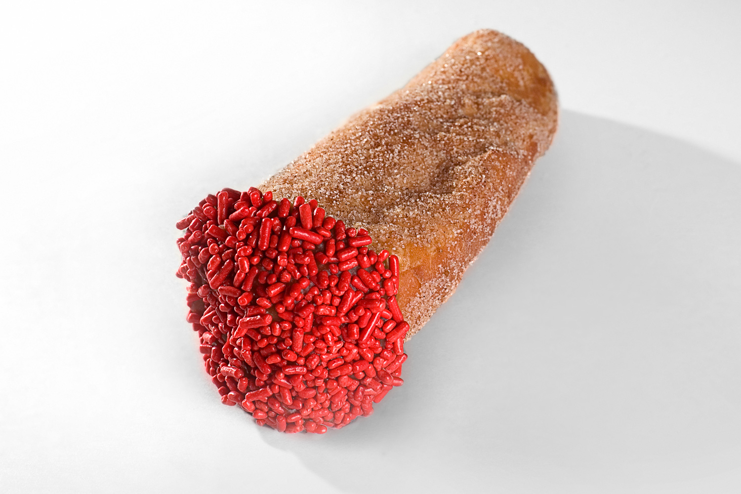 This is a doughnut shaped like a blunt. It’s covered in cinnamon sugar and the end is dipped in maple frosting and encrusted with red sprinkles that look like embers. You can get this, the Old Dirty B**tard and a Marshall Mathers (a doughnut covered in M&Ms) for just $4.20. I see what you did there, Voodoo Doughnuts.